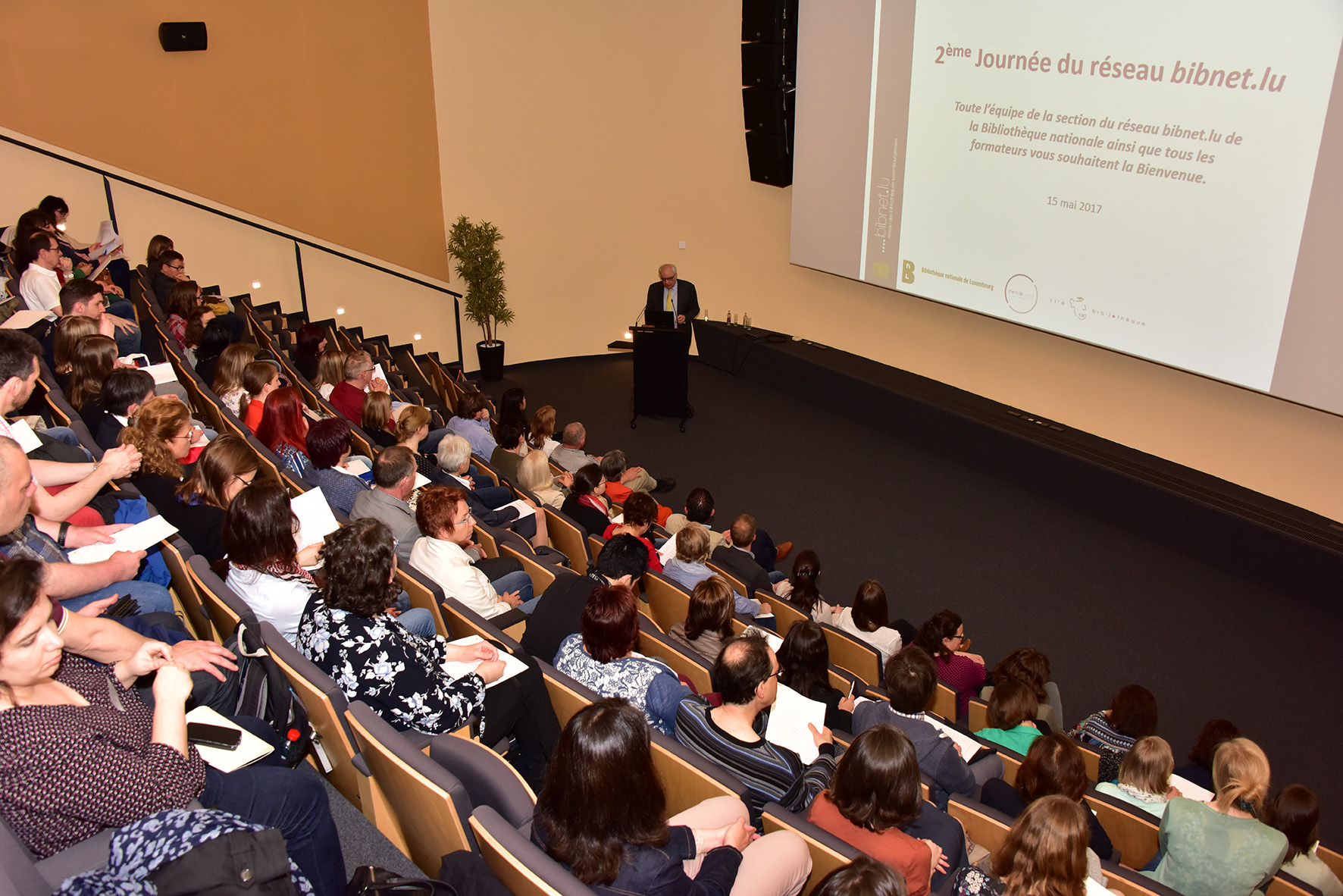 Lors de son allocution aux participants, Guy Arendt, Secrétaire d’Etat à la Culture, a félicité le réseau bibnet.lu de sa croissance continue. Il fait figure de « best practice » quant à la gestion et la coopération transversale entre bibliothèques. Le Secrétaire d’Etat a également loué la diversité de l’offre documentaire désormais disponible au Luxembourg et accessible via un seul point d’entrée, le portail www.a-z.lu.