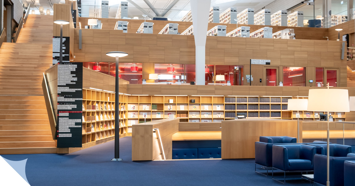 De Liessall ass d’Häerzstéck vun der Bibliothéik. Op dräi Stäck fannt Dir 200.000 Dokumenter aus alle Wëssensberäicher, déi Iech am Fräihandberäich zur Verfügung stinn.